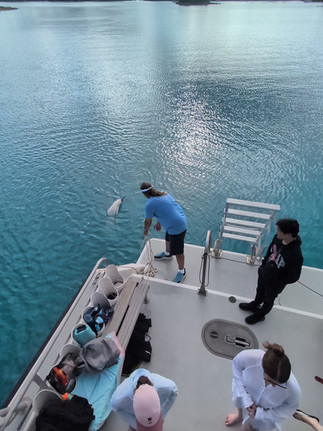 After we’d dried off, we headed out to deeper water to do some oceanographic sampling. We targeted 4 sites at different distances out from BIOS, to see a gradient in ocean conditions as we sampled further and further from shore. The students learned how to do a simple surface zooplankton tow using a net, and how to prep, deploy, and sample a Niskin bottle for seawater for nutrients. I really loved watching them be exposed to these sorts of techniques at this stage in their career, it’s something I missed out on having not done a degree in marine biology or oceanography, so it was nice to see it through their eyes.